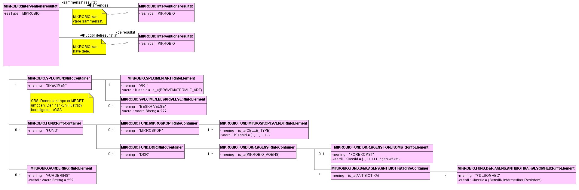 Note: Denne arketype er meget umoden - hvilket ikke mindst skyldes min manglende indsigt i denne gren af fagområdet. Jeg er fx i tvivl om, hvorvidt det skal være muligt at sammensætte flere MIKROBIO-svar i ét, og om hvorvidt det er smart at begrænse svaret til at omfatte præcis én sample. Men som udgangspunkt for videre diskussion og analyse er det vist OK.