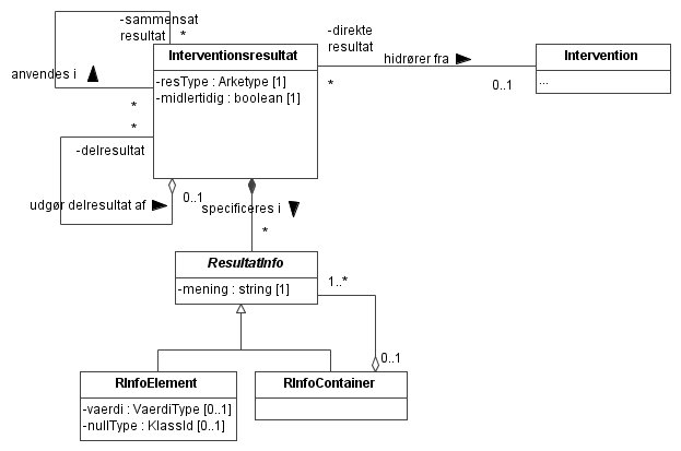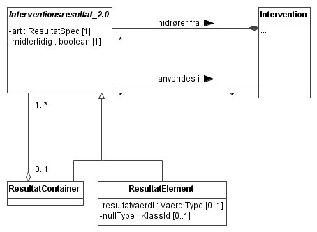 - Egenskaberne for resultat blev udtrykt i Interventionsresultat.art. Datatypen var ResultatSpec, som i GEPJ v2.0 gav mulighed for at udtrykke et antal egenskaber. Imidlertid er det vurderet, at man selv med en langt større datatype ikke ville kunne udtrykke alle nødvendige egenskaber i fornøden detalje.